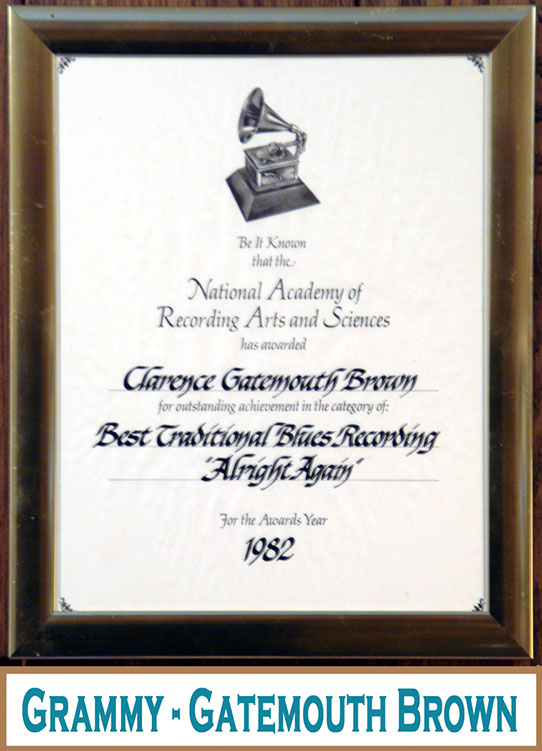Clarence "Gatemouth" Brown's Grammy for the Album "Alright Again"