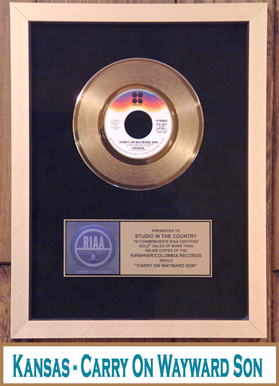 KANSAS "Carry on My Wayward Son" Gold Single (Now Platinum)